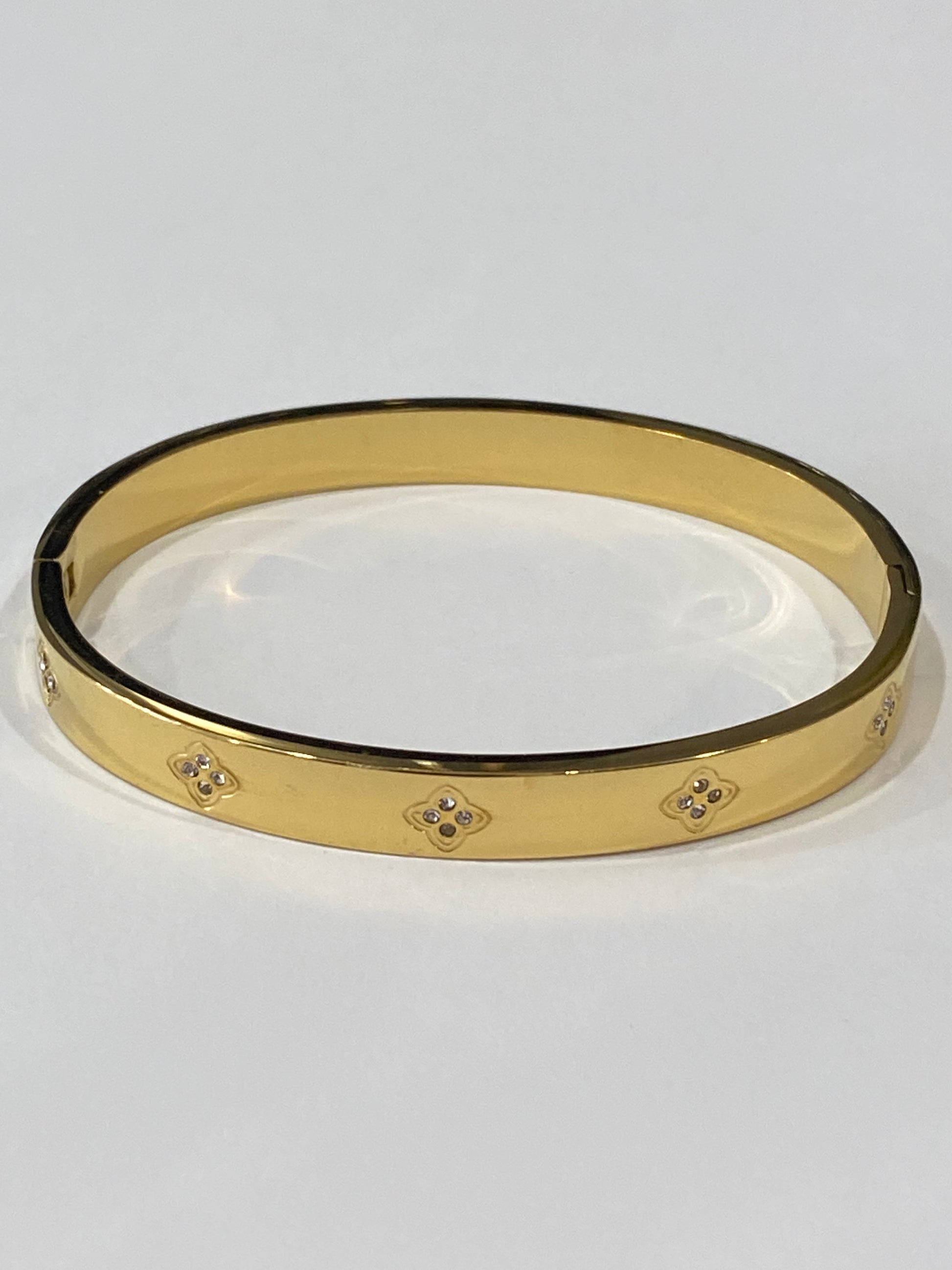 Bracelet design feuille de trèfle élégant en acier inoxydable plaqué or 18k.